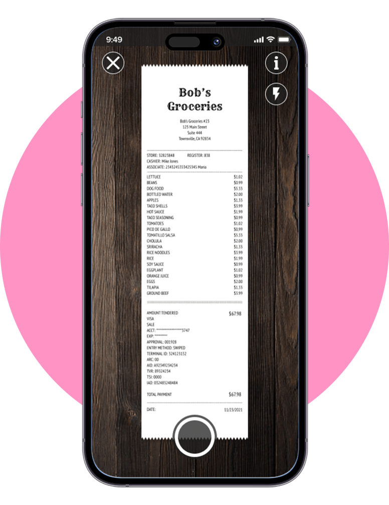 Upload your paper or digital receipt into the app.